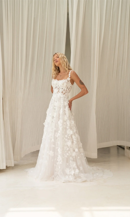 Drifting through the garden in full bloom, Lucy is the wedding dress made for the bride who dreams in florals.