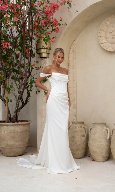 Confident and refined, Millie is a bridal gown that favours clean lines and modern elegance.